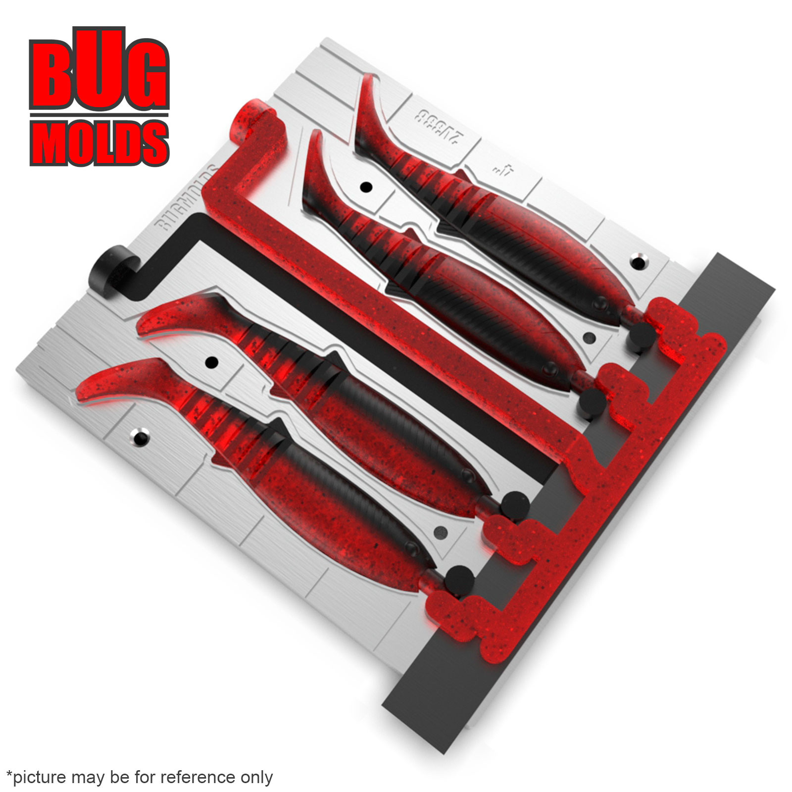 Fishing Soft Bait 2-Port Multi-cavity Aluminum mold CanibalShad 4 inch 4-cav ID 2V338_4a from Bugmolds