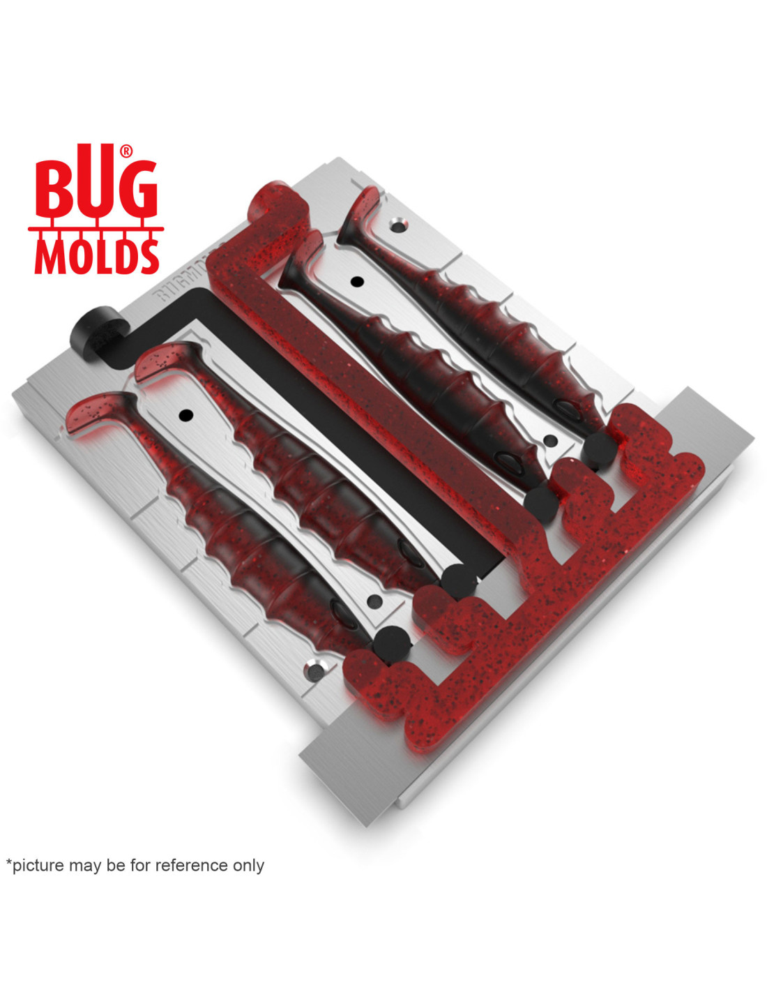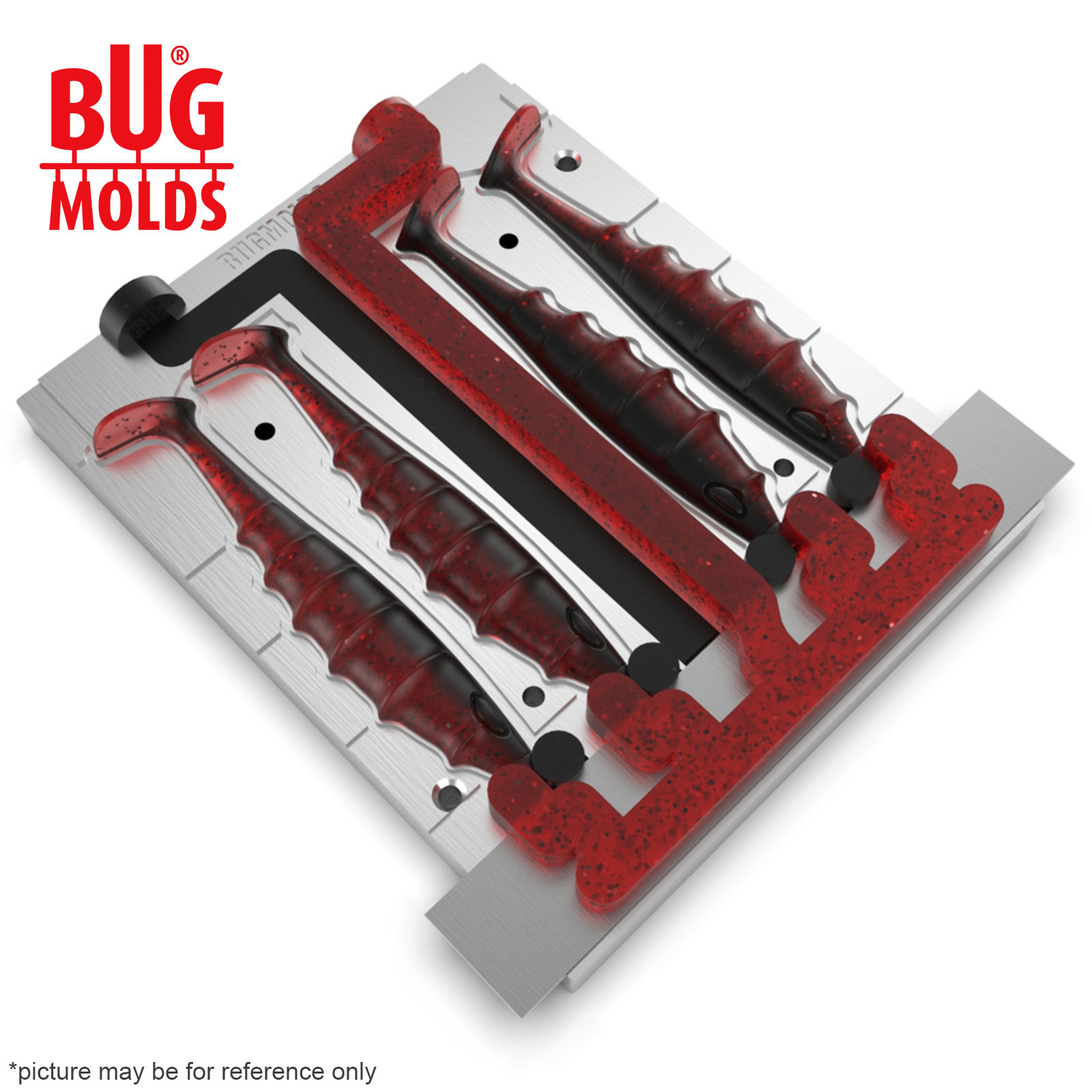 Fishing Soft Bait 2-Port Multi-cavity Aluminum mold Predator 4 inch 4-cav ID 2V1080_4a from Bugmolds