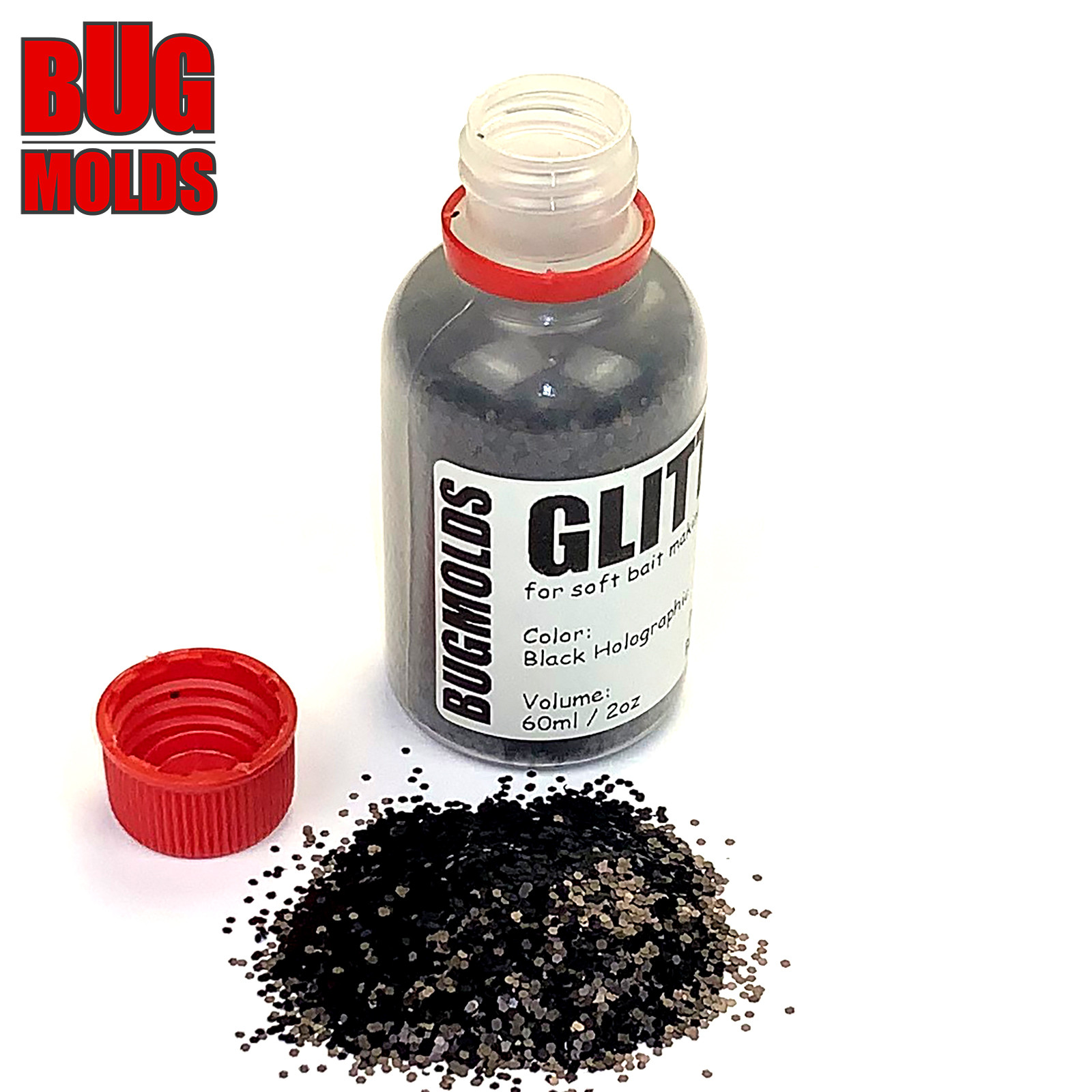 Holographic glitter powder for DIY bait making Black color 1mm 60ml / 2oz ID G009