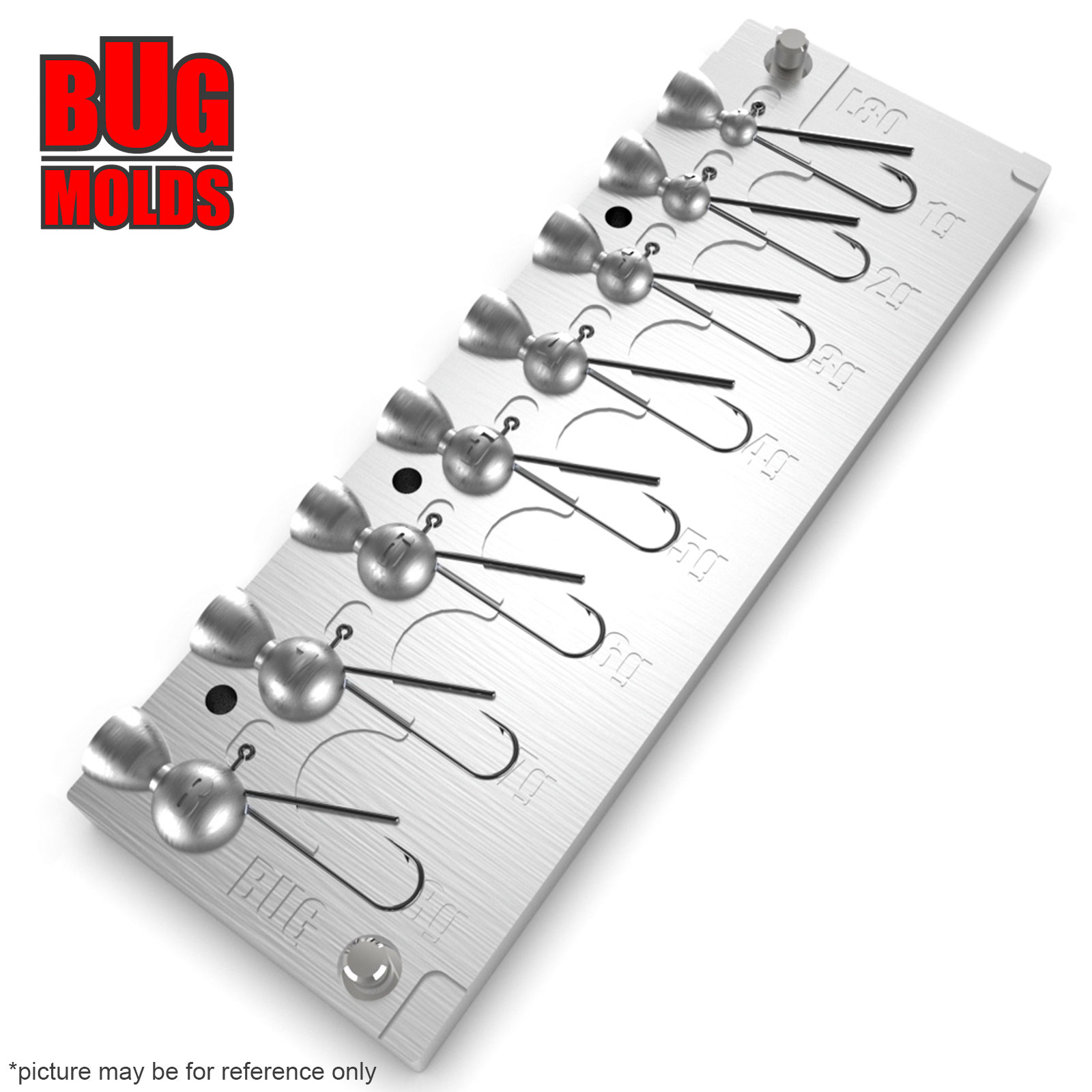 Aluminum CNC Mold Jig Head Round Shape Hook Protection 1-8g 8-cav: 1-2-3-4-5-6-7-8g ID L80