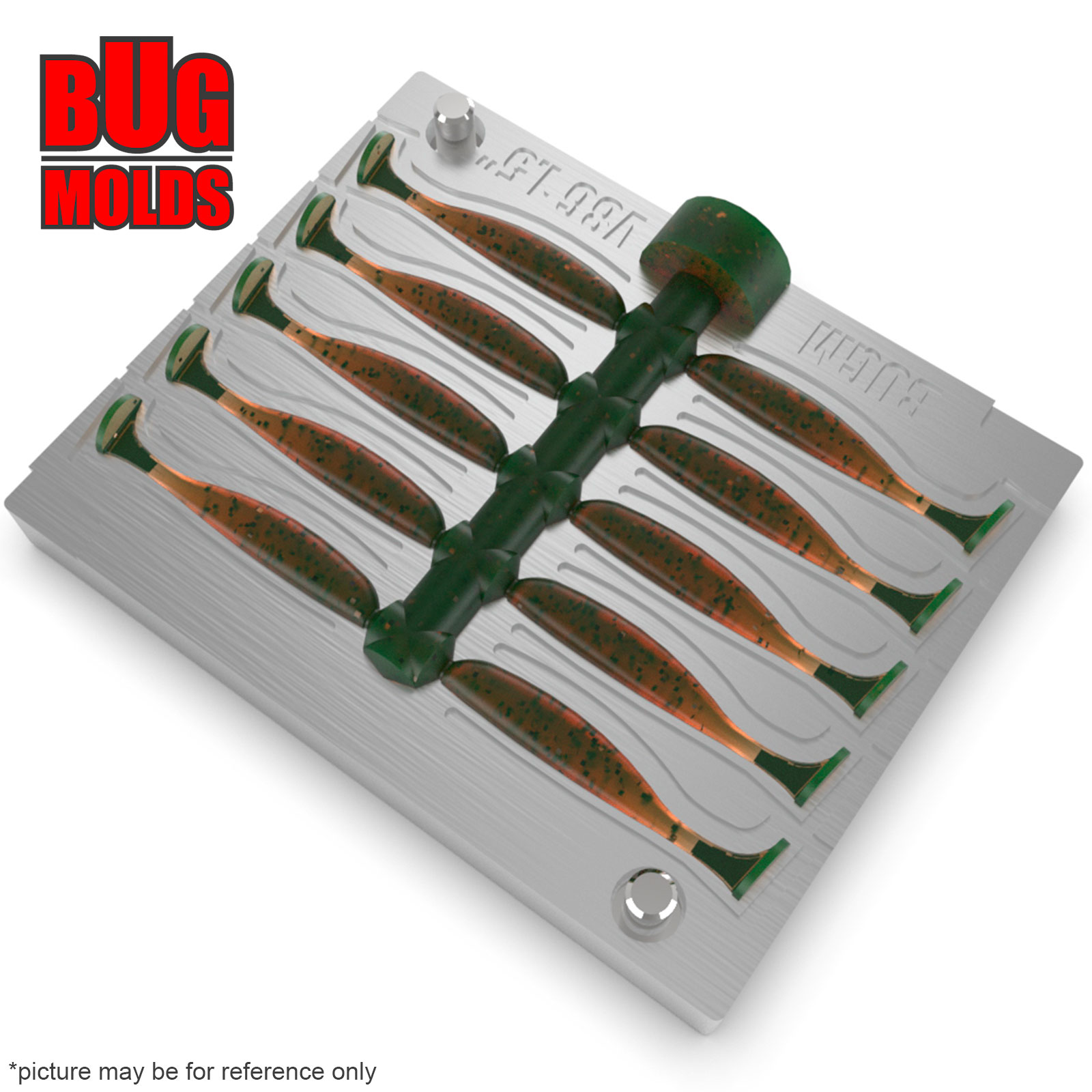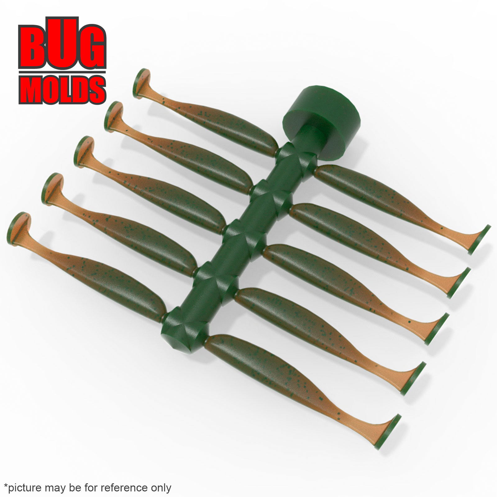 - Multi-cavity DIY bait molds for making fishing soft plastic baits.
