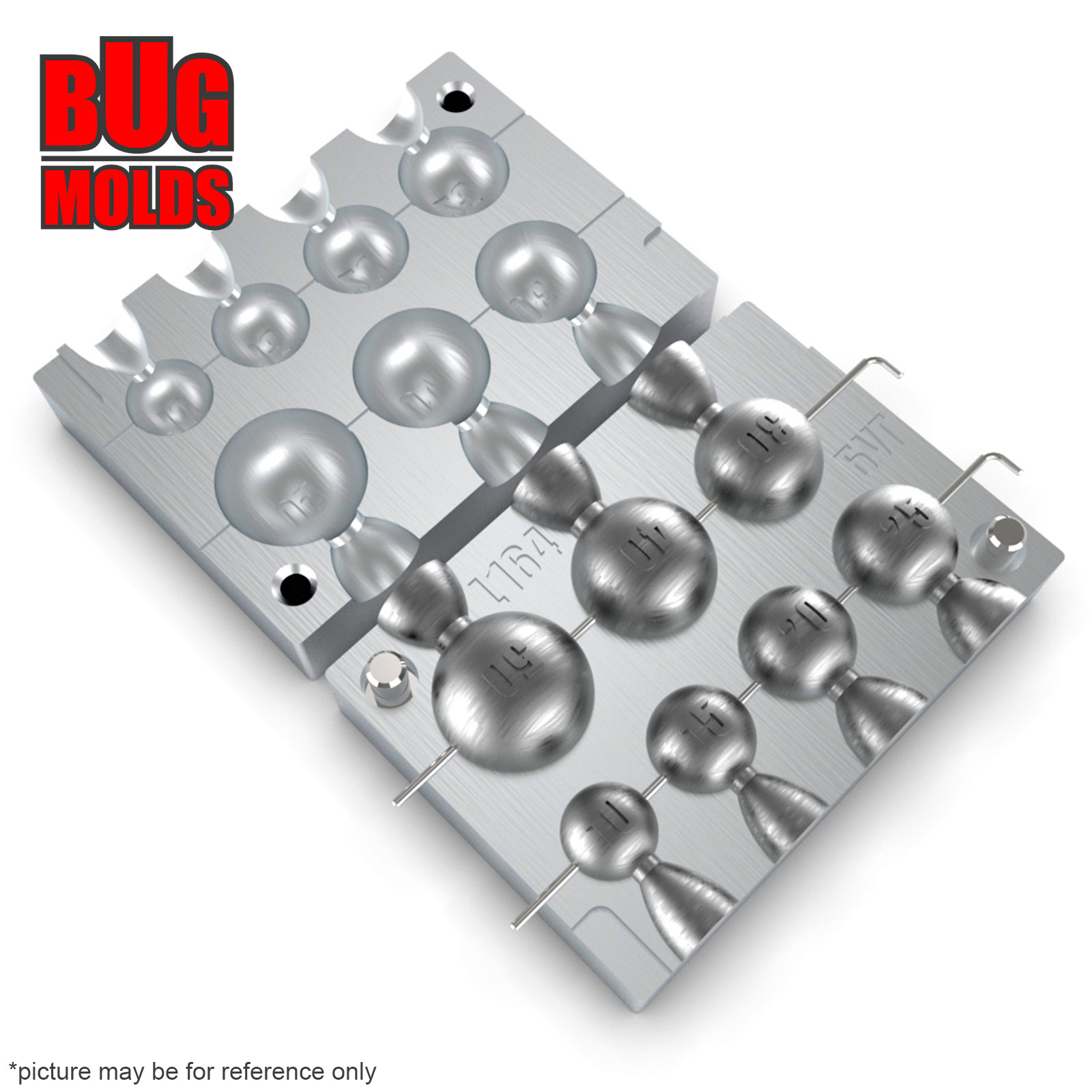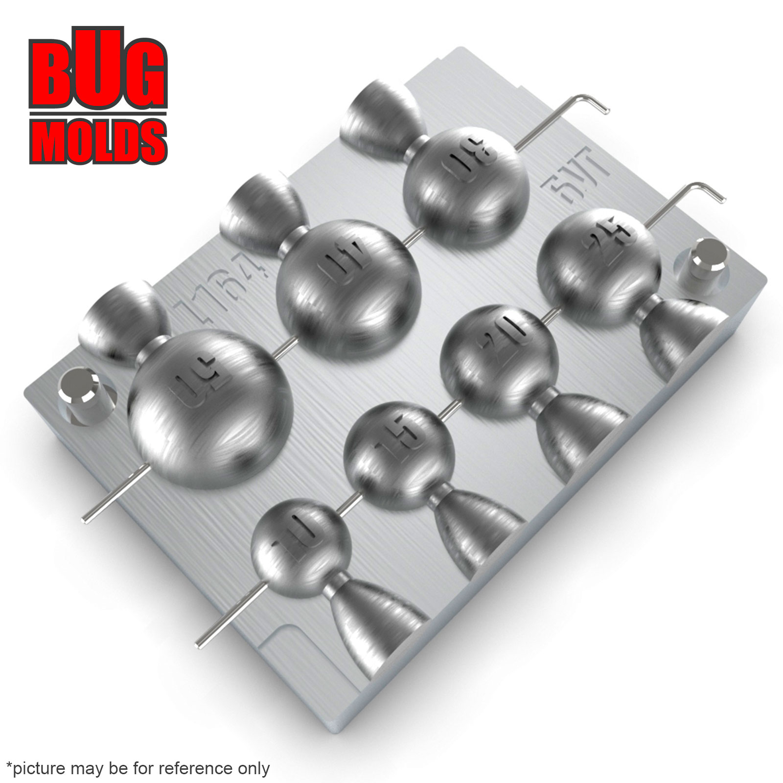 Aluminum CNC Mold InLine Sinker Ball Lead 10-50g 7-cav: 10-15-20-25-30-40-50g ID L164