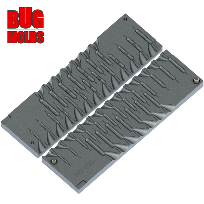 Aluminum CNC Mold Drop Shot Classic 1-7g 20-cav: 1-1.25-1.5-1.75-2-2.25-2.5-2.75-3-3.25-3.5-3.75-4-4.25-4.5-4.75-5-5.5-6-7g ID L