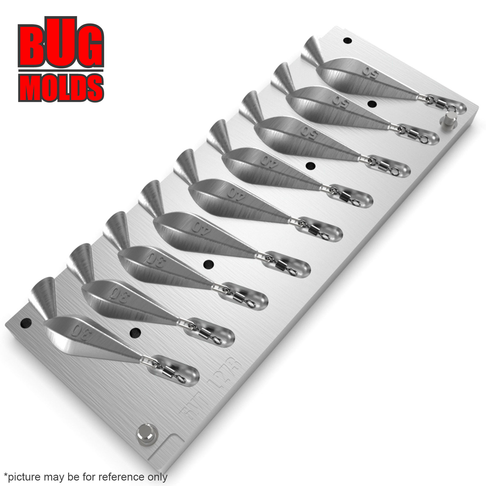 Aluminum CNC Mold Carp Sinker Horizon 30-50g 9-cav: 30-30-30-40-40-40-50-50-50g ID L273