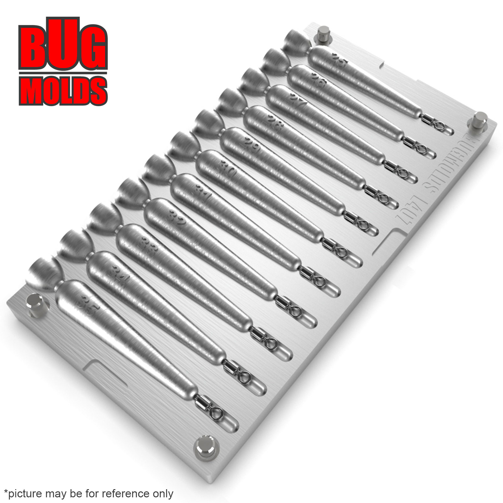 Aluminum CNC Mold Drop Shot Special Shape 25-35g 11-cav: 25-26-27-28-29-30-31-32-33-34-35g ID L407