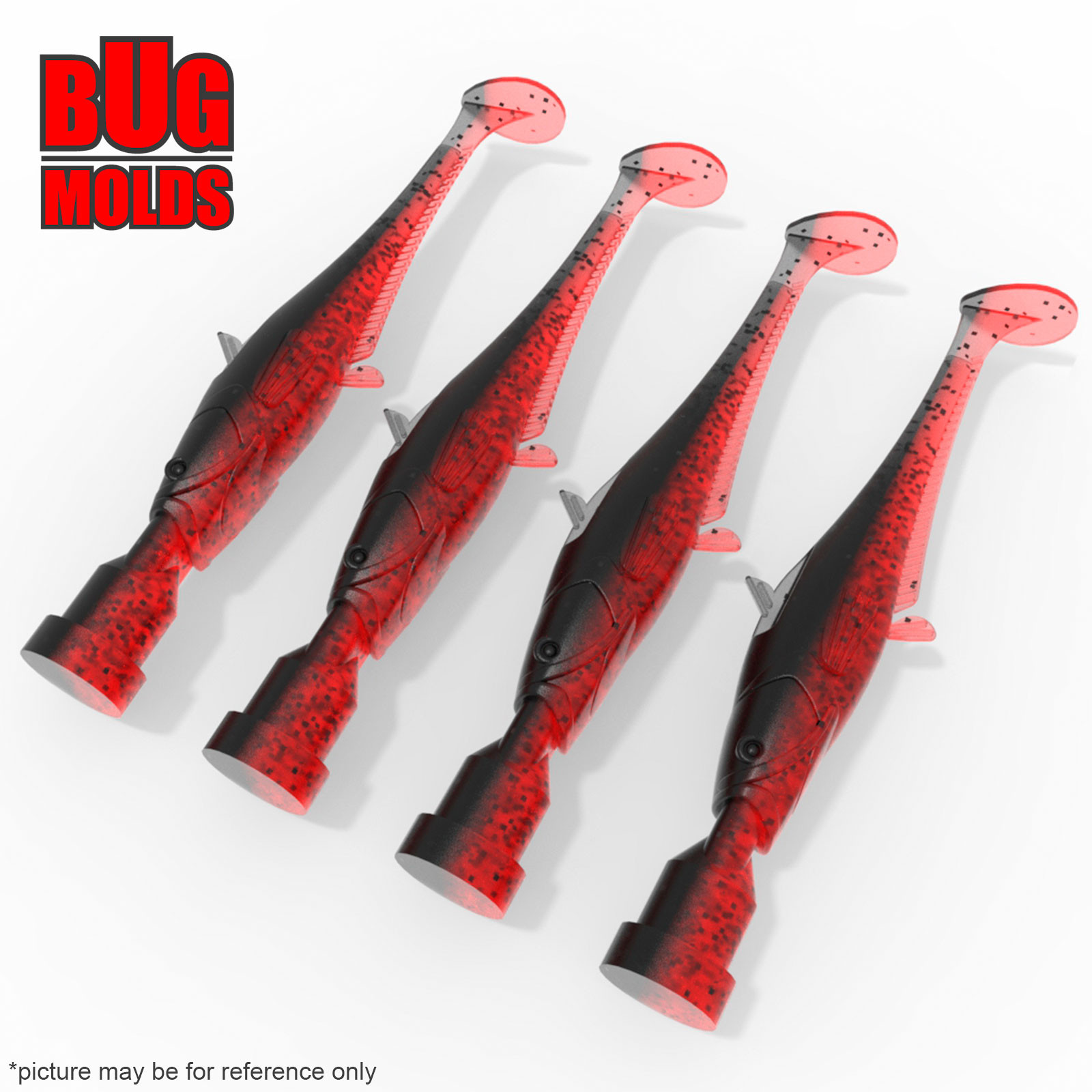 - Multi-cavity DIY bait molds for making fishing soft plastic baits.
